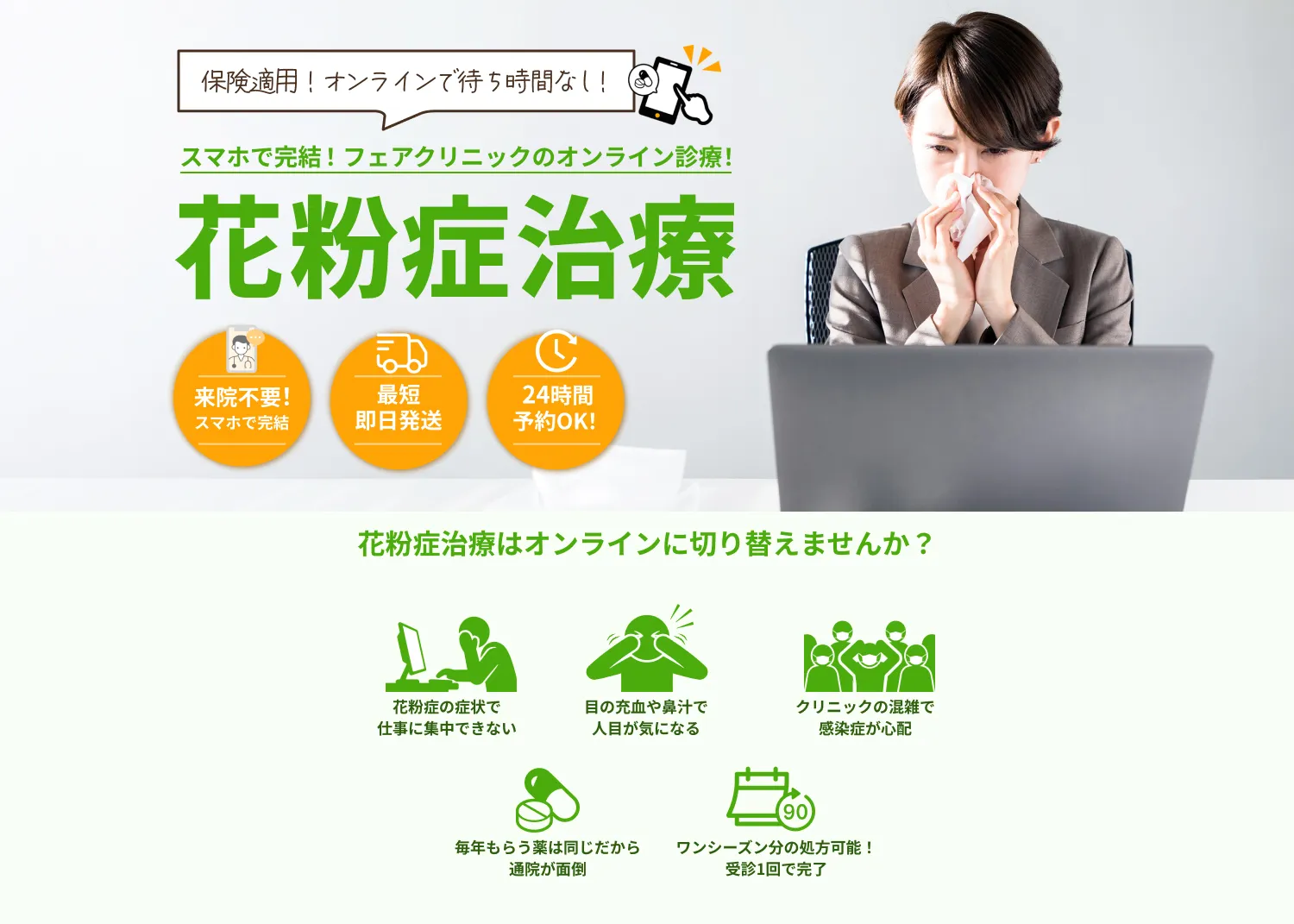 対症療法は花粉症の症状や生活の質が低下するのを和らげることが目的です。